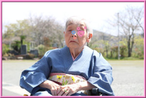 潮風園の職員が記念写真を撮影して額縁に入れてお贈りしています。