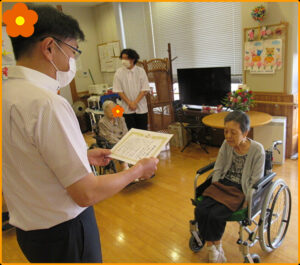 (いちき串木野市在ではないご入居者へは、潮風園より顔写真を贈呈しました)