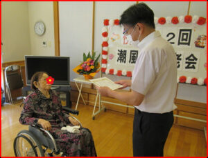 100歳以上、99歳及び90歳の方々へは潮風園からお祝い金を、