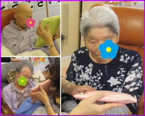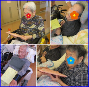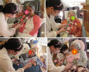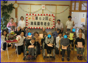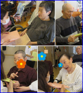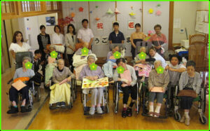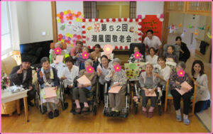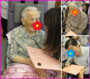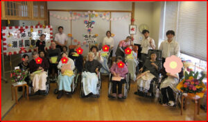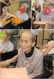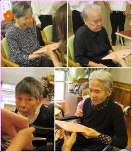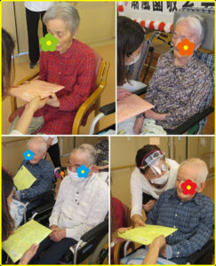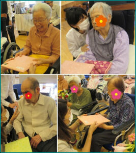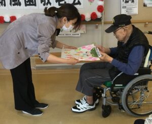 今回は、潮風園から全入居者へお祝いの品の贈呈の様子と