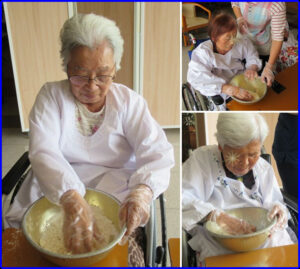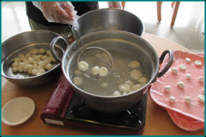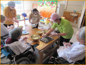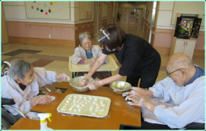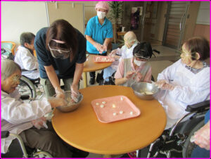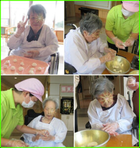 潮風園では、ご入居者と一緒にお団子をつくりました。