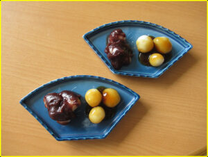 小皿にお団子を3つずつ入れて、それぞれにあんことみたらしを添えて