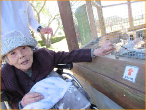 ご入居者さまばかりでなく、職員も、我を忘れてウサギに夢中になることもしばしば。