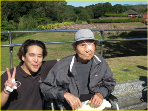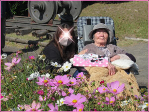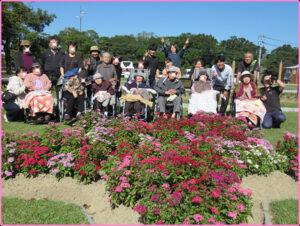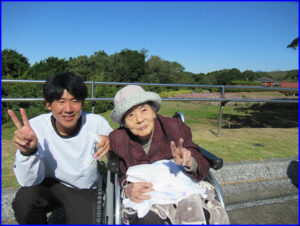 秋の澄んだ空気の中、この日もご入居者の方々と一緒に