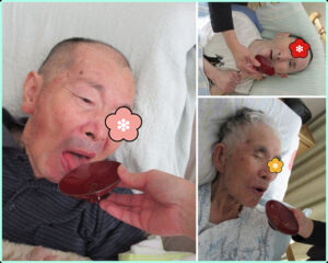 ほんの少しお屠蘇を口にしてもらい、一緒に新年をお祝いしました。
