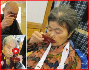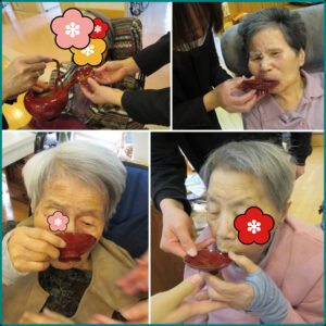 ほんの少しお屠蘇を口にしてもらい、一緒に新年をお祝いしました。