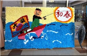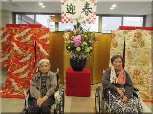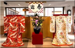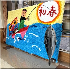 玄関を入ってすぐのスペースには、お正月にちなんだ華やかな飾り物を配置しました。