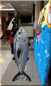 そして釣り竿の先から延びる釣り糸に喰いつくマグロにはバルーンを採用し、