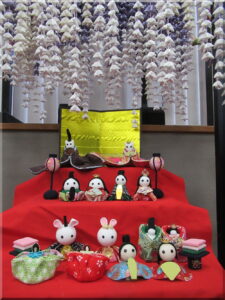 毎年3月になると生福郵便局ではたくさんの雛飾りが展示されます。