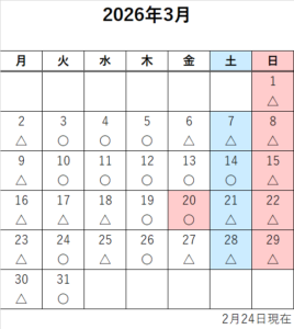 2026年3月の空床情報